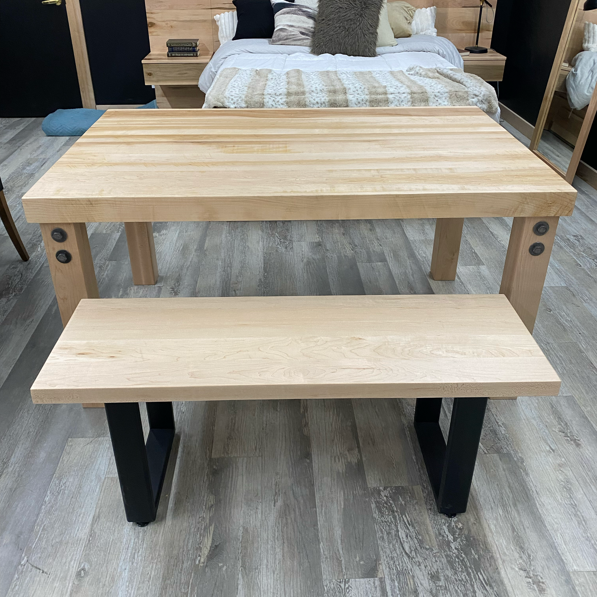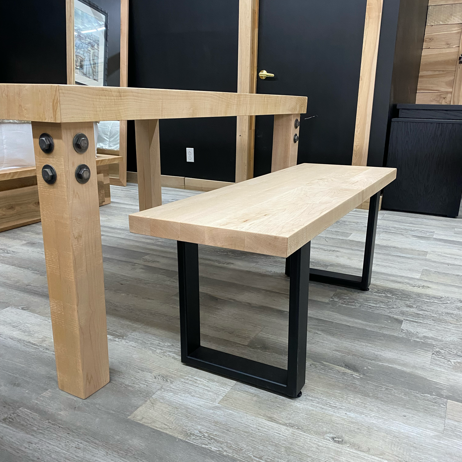 Banc en érable massif (sans noeuds) avec base en acier