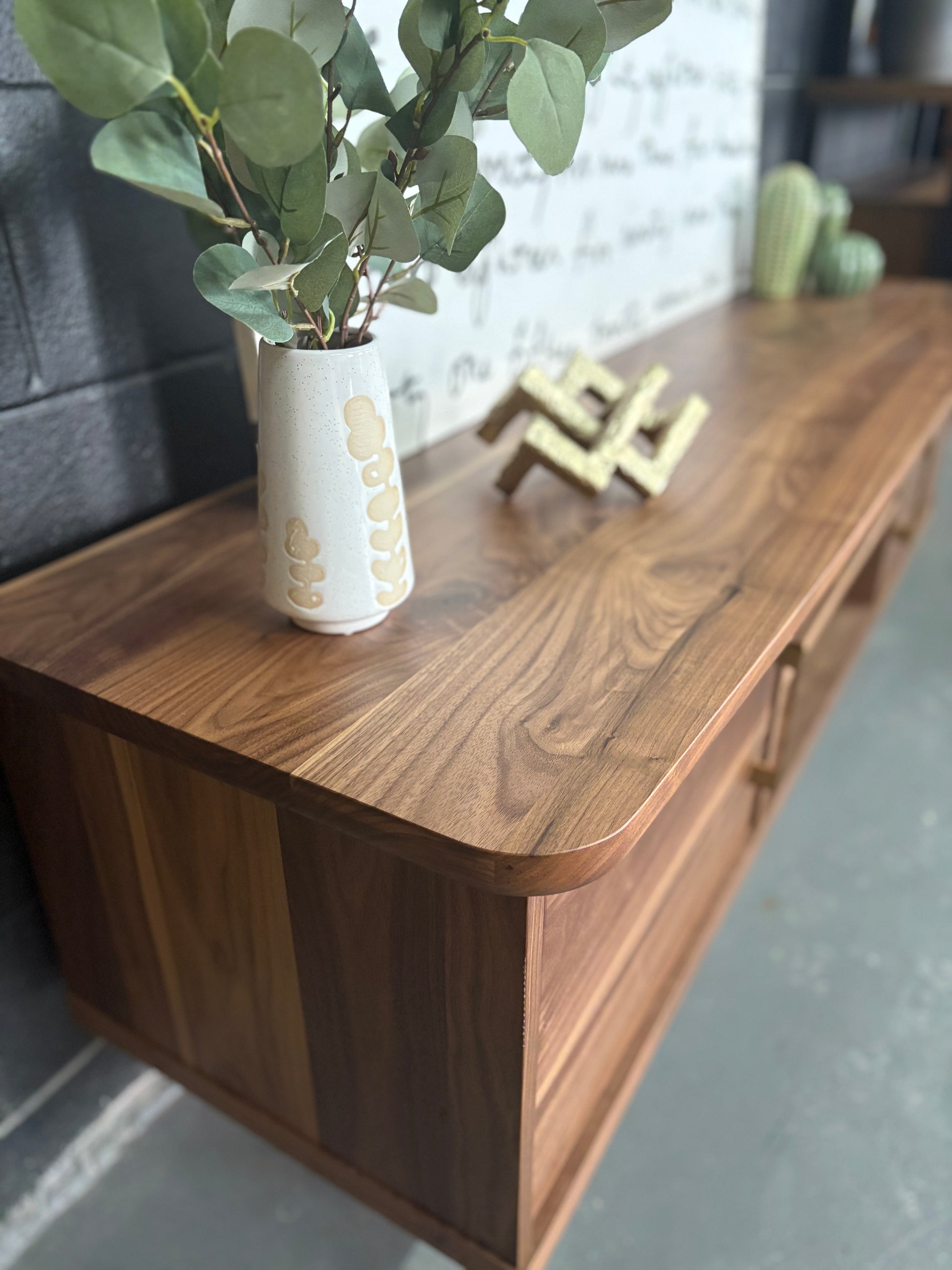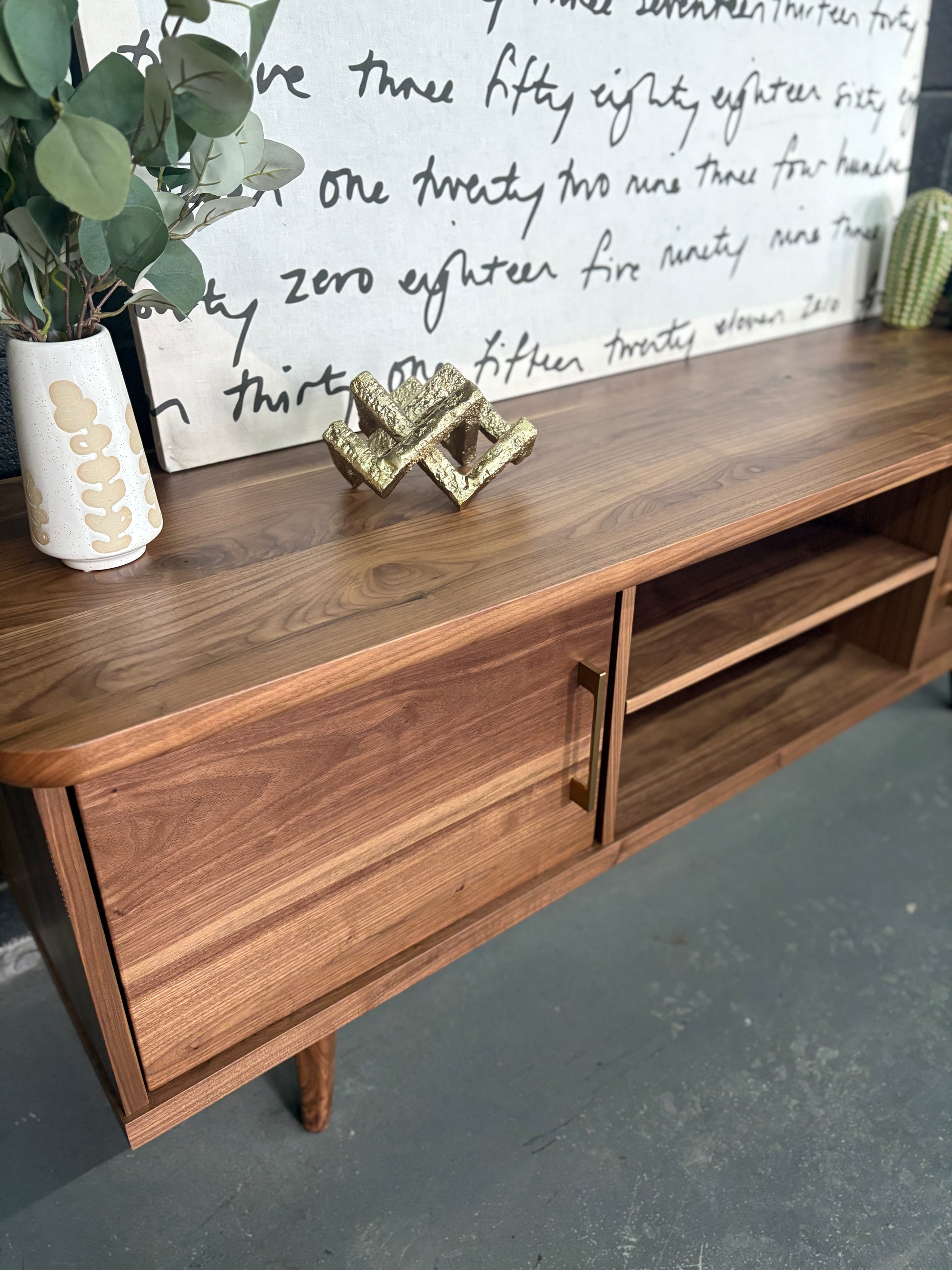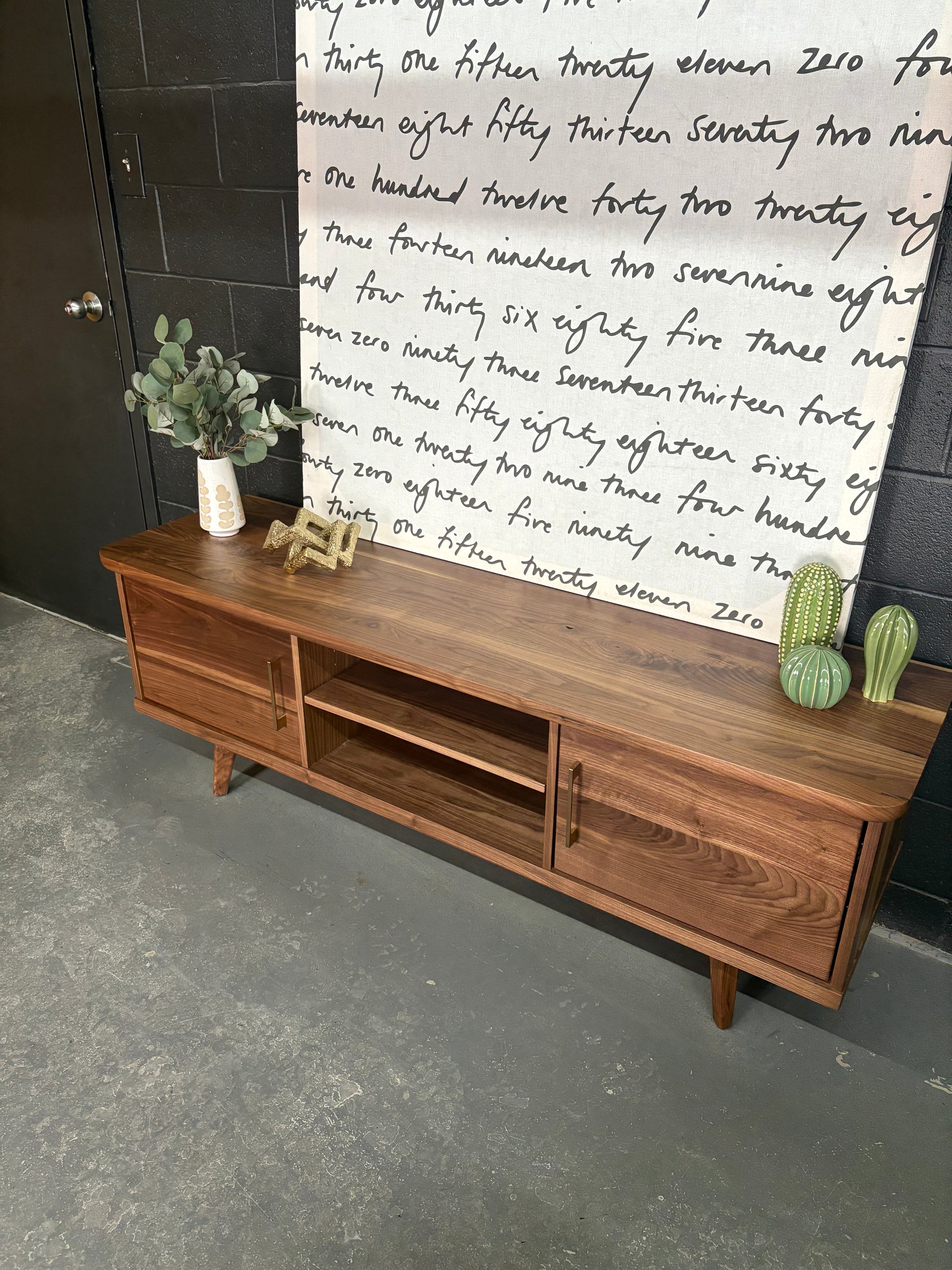 Le meuble de télévision Mégantic est fabriqué entièrement en BOIS MASSIF (au choix : érable ou noyer).