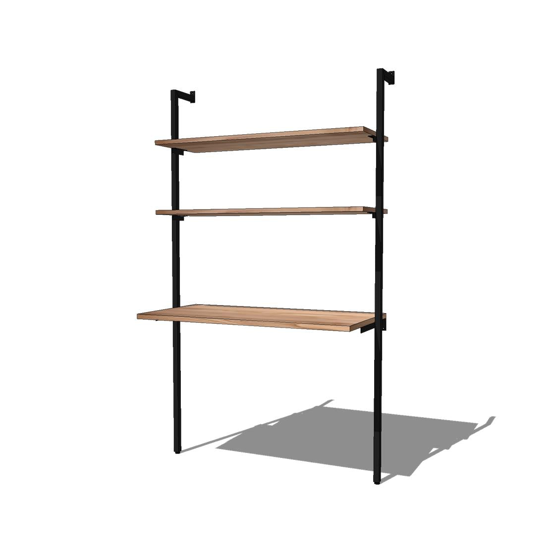 Le bureau de travail Sutton peut être fabriqué entièrement en BOIS MASSIF (au choix : érable ou noyer) ou en PLACAGE DE BOIS (noyer, merisier ou chêne). La structure murale est en ACIER.