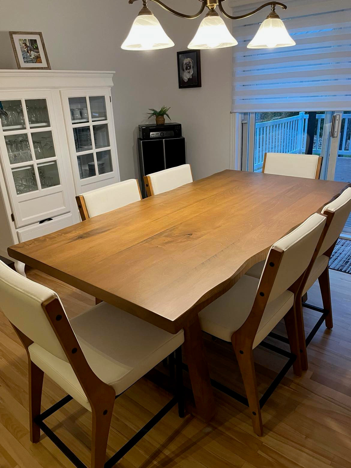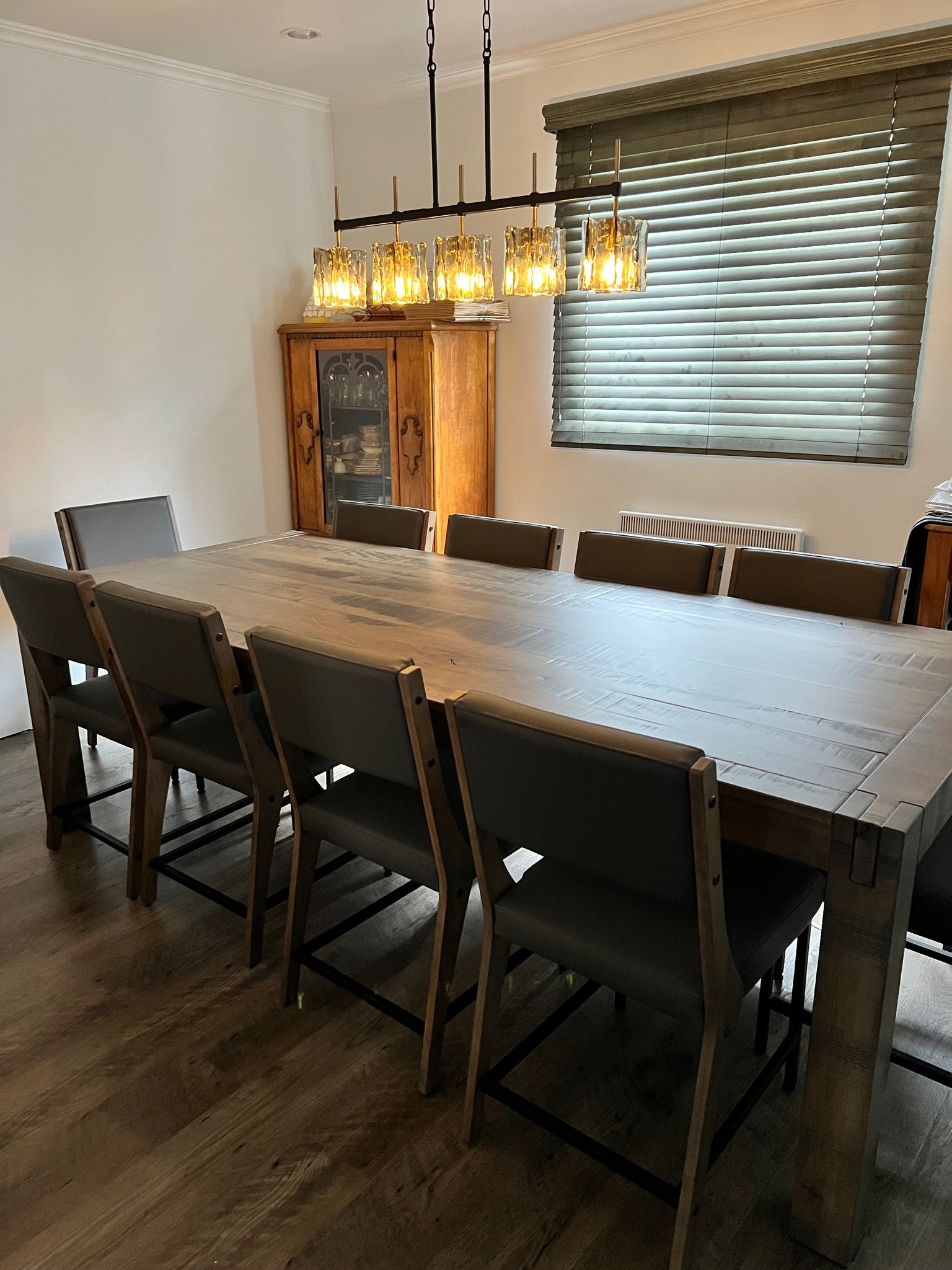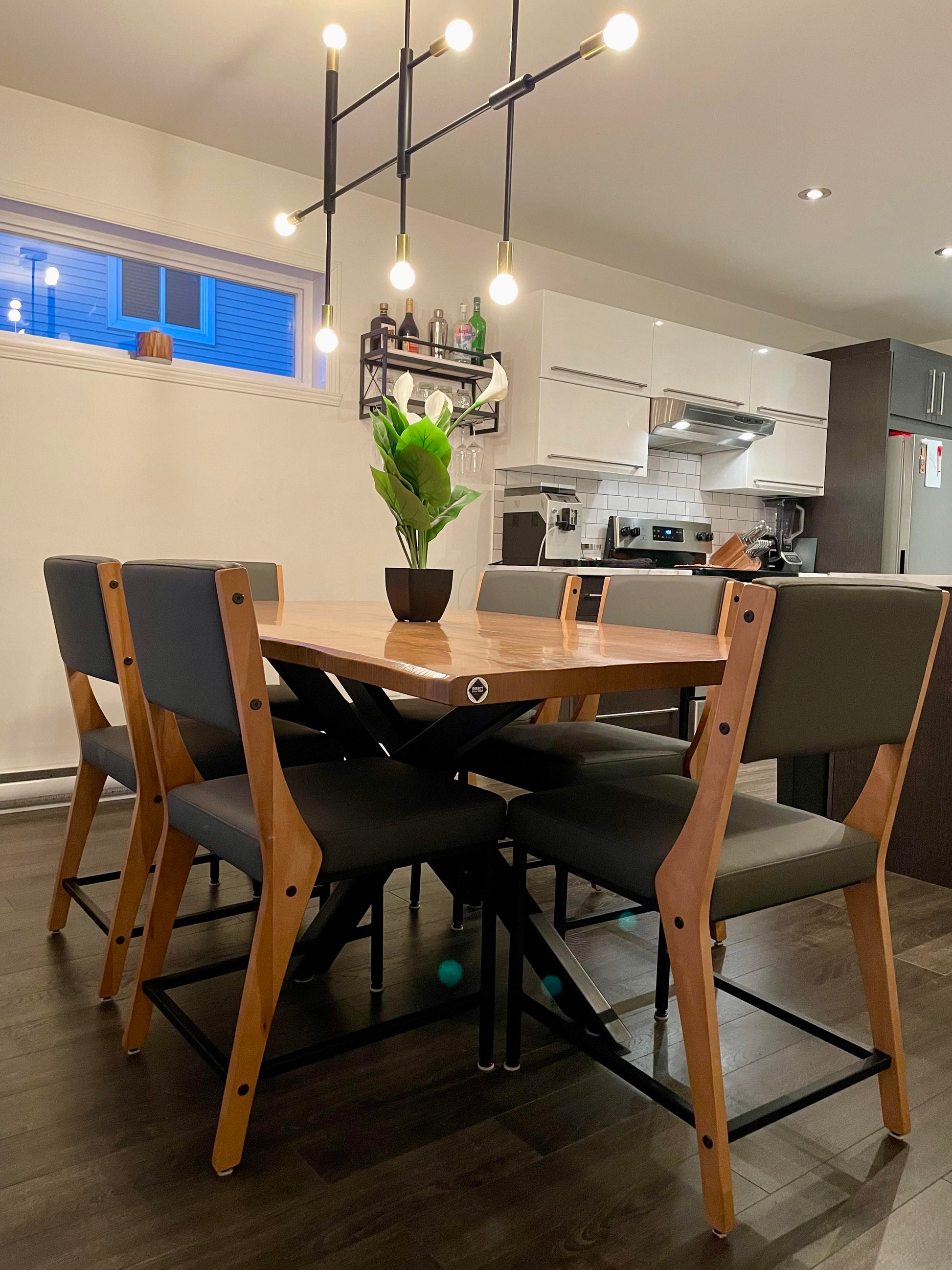 Après le grand succès de notre tabouret Victor, nous sommes fiers d'introduire le même modèle en format chaise pour la salle à manger. La parfaite alliance de bois, acier et rembourrage pour donner une douche moderne à votre décor.