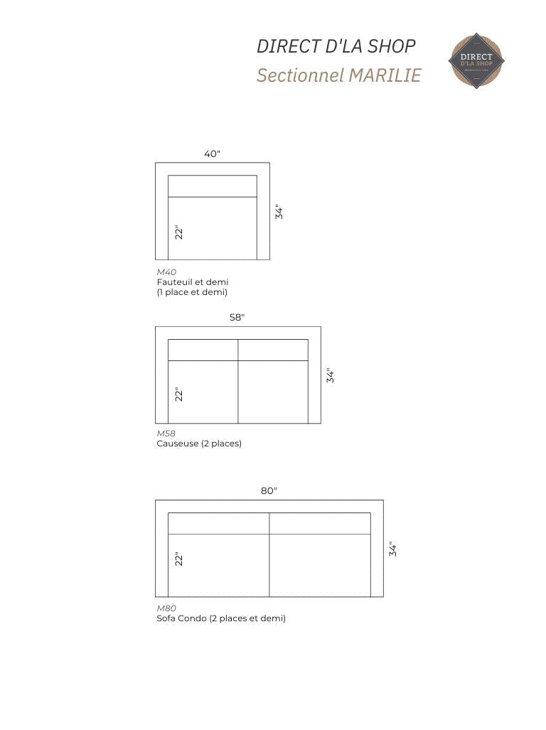 Largeur (sofa condo) : 80" (203 cm)
