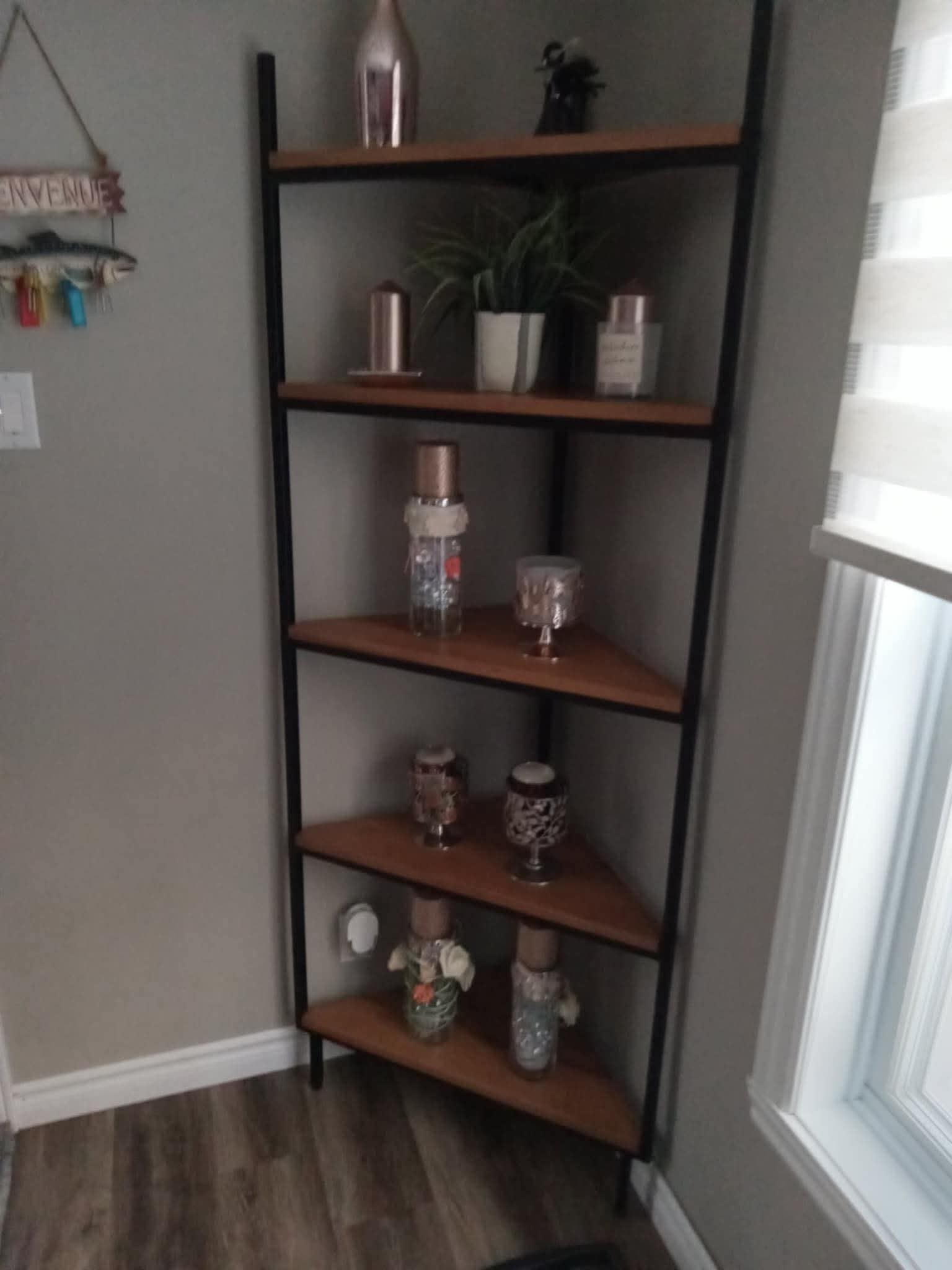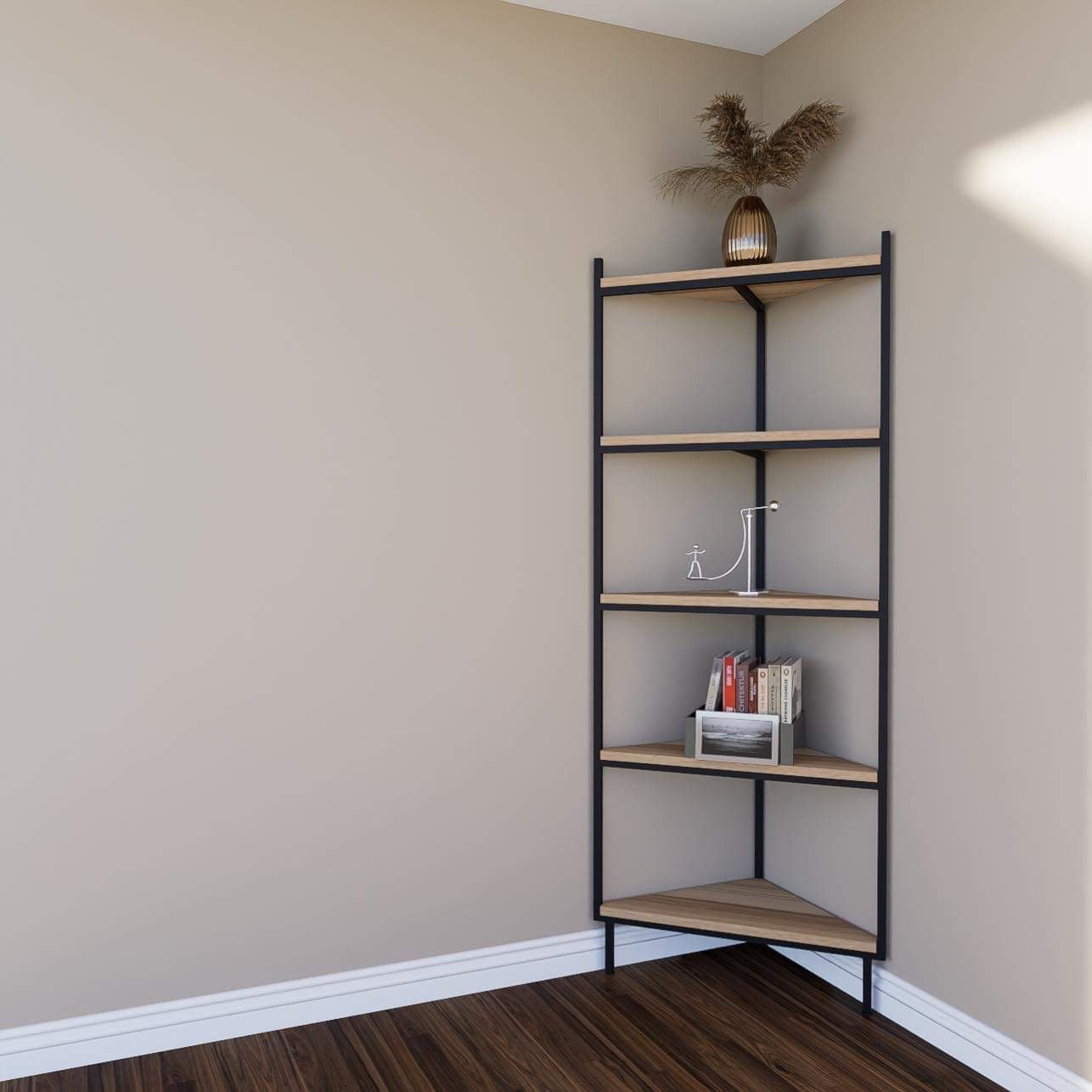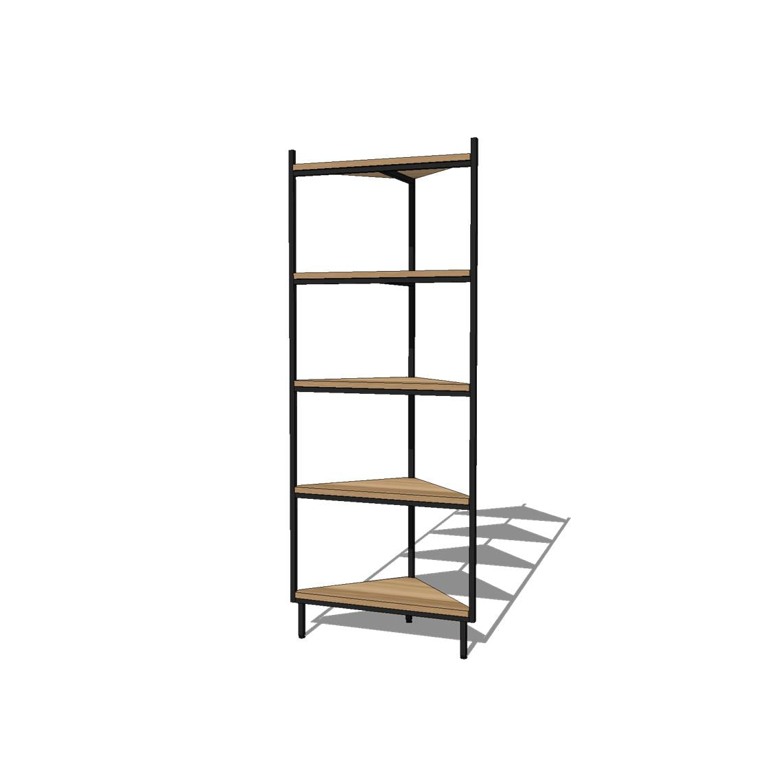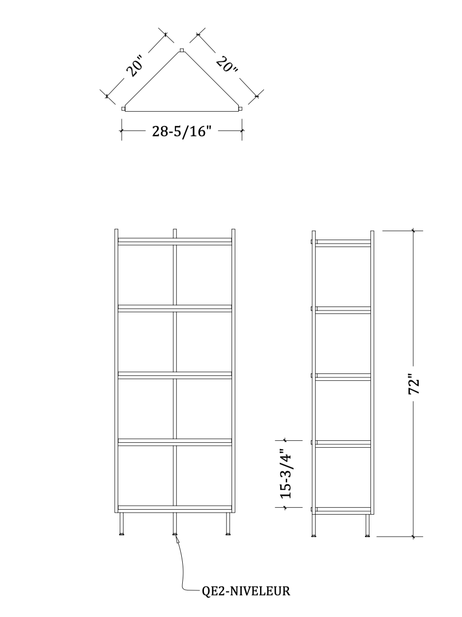 L'étagère de coin Sutton peut être fabriquée entièrement en BOIS MASSIF (au choix : érable ou noyer) ou en PLACAGE DE BOIS (noyer, merisier ou chêne). La structure de l'étagère est en ACIER.