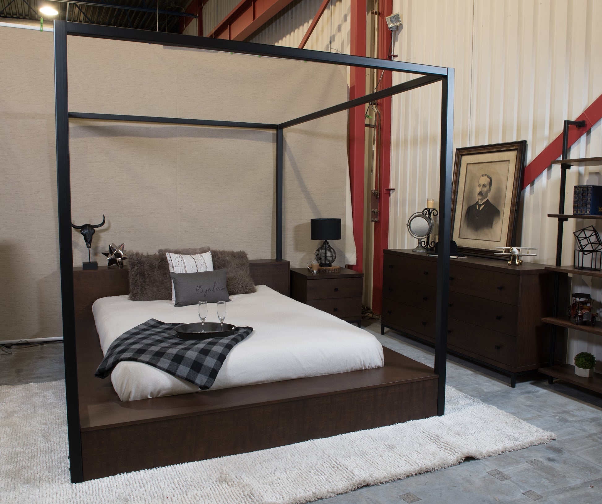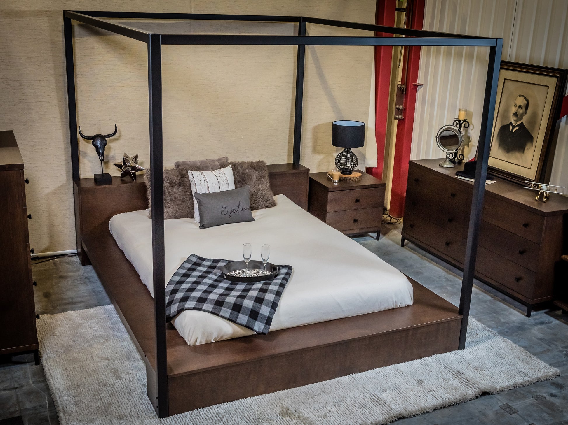 Ce lit est disponible avec ou sans baldaquin. Celui-ci est fabriqué en acier.