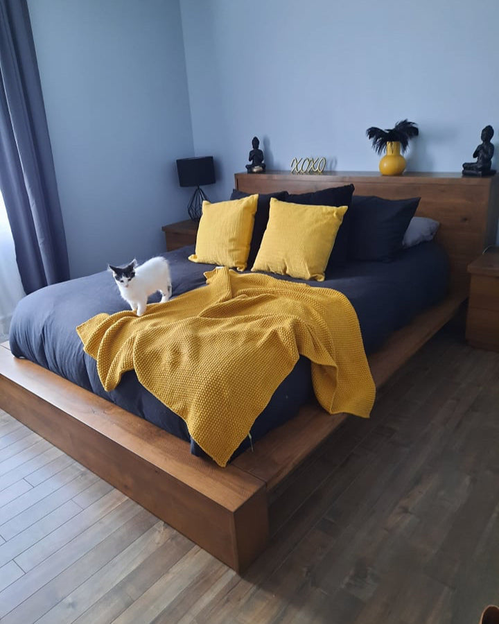 Il vous est possible de faire ajouter un rangement à l'intérieur de la tête de lit (sous forme de coffre qui s'ouvrira par le dessus) afin d'y ranger vos coussins, couvertures ou autres objets.