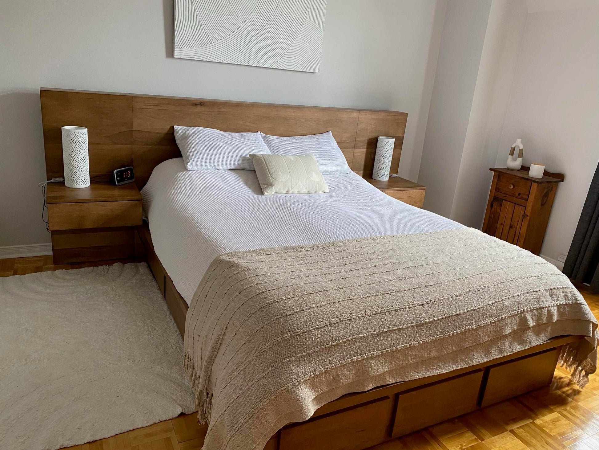 Le lit St-Élie-de-Caxton est fabriqué entièrement en BOIS MASSIF (au choix : érable ou noyer).