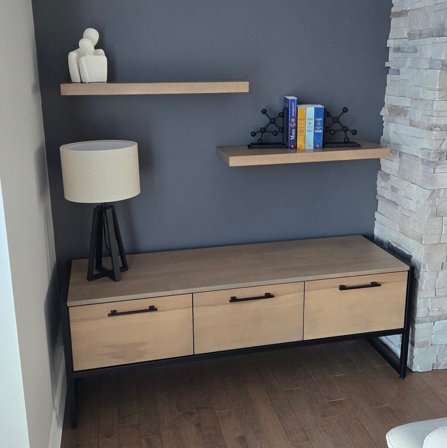 Meuble de télévision en bois et acier