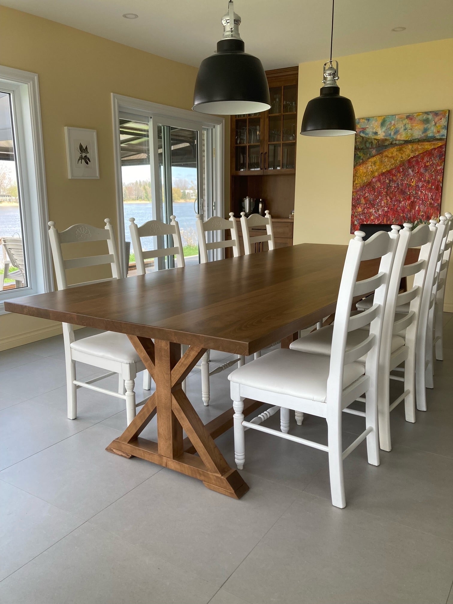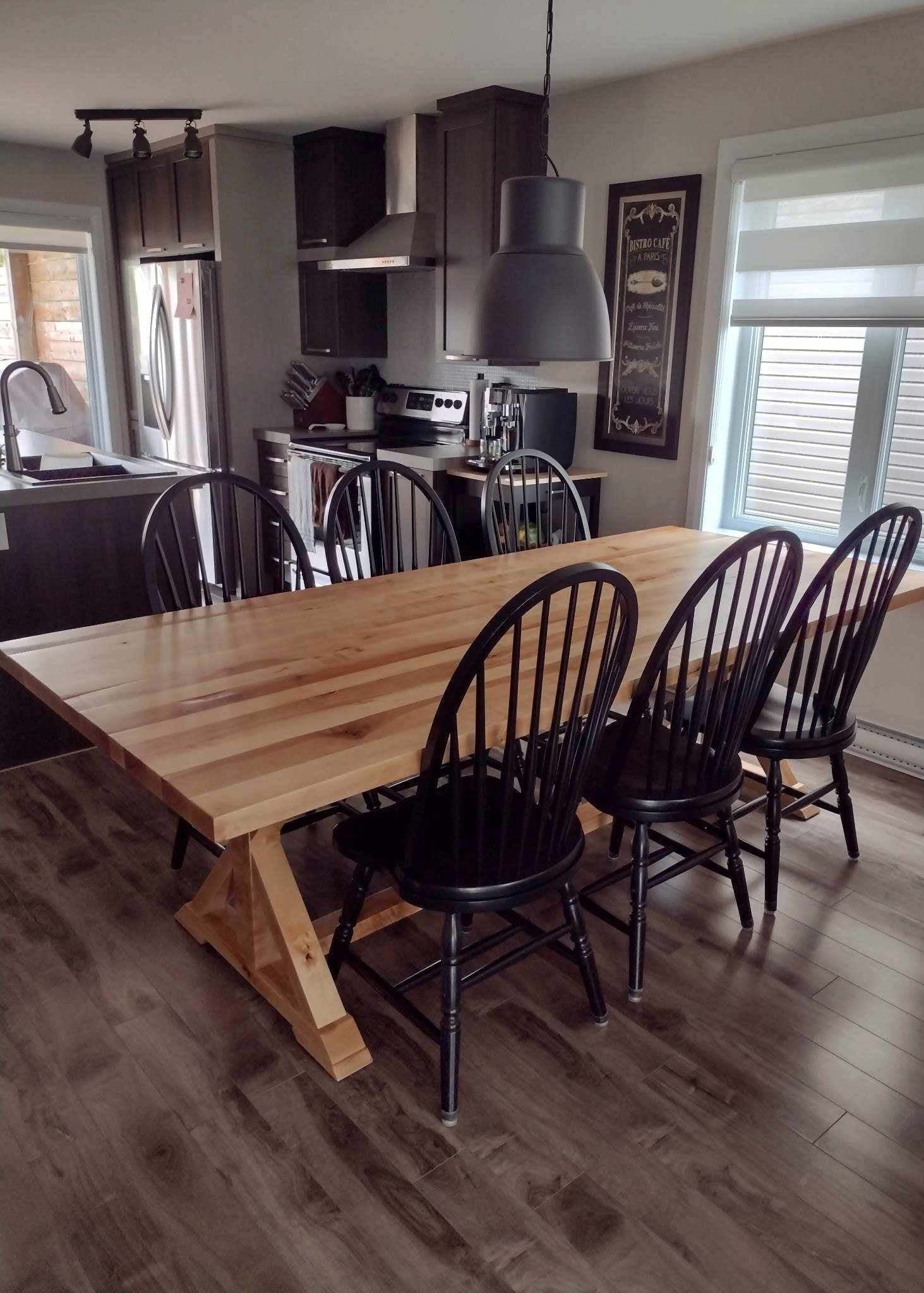 La table Acton Vale est disponible en plusieurs formats standards populaires, mais nous pouvons la fabriquer sur mesure au pouce près selon vos besoins.