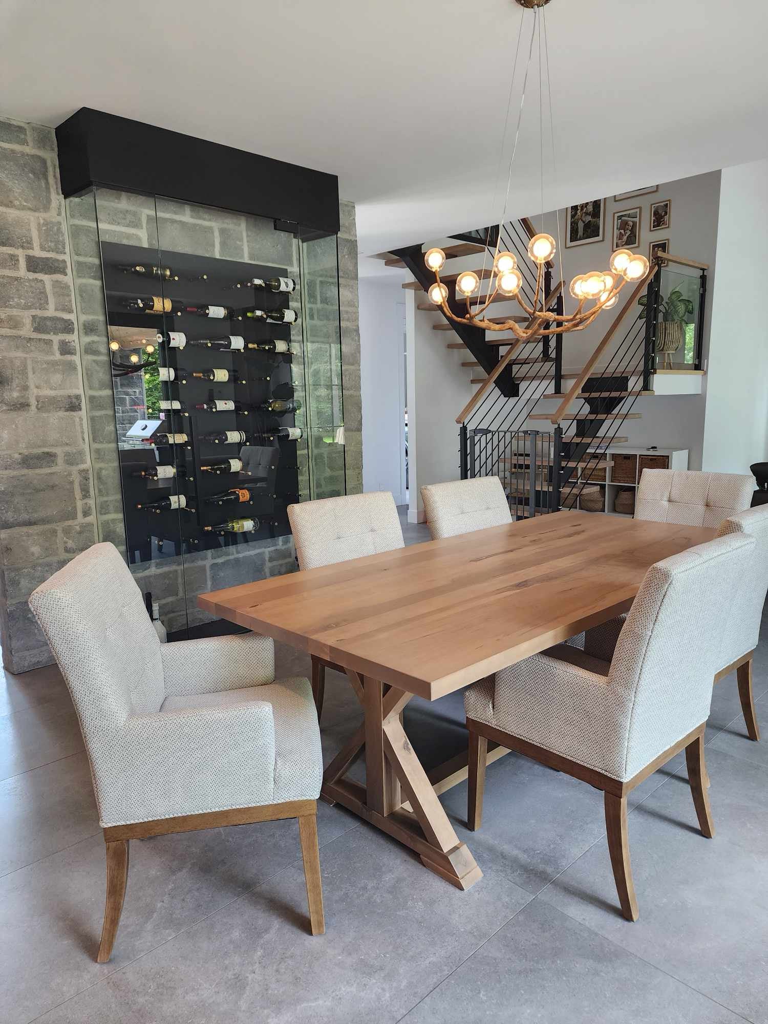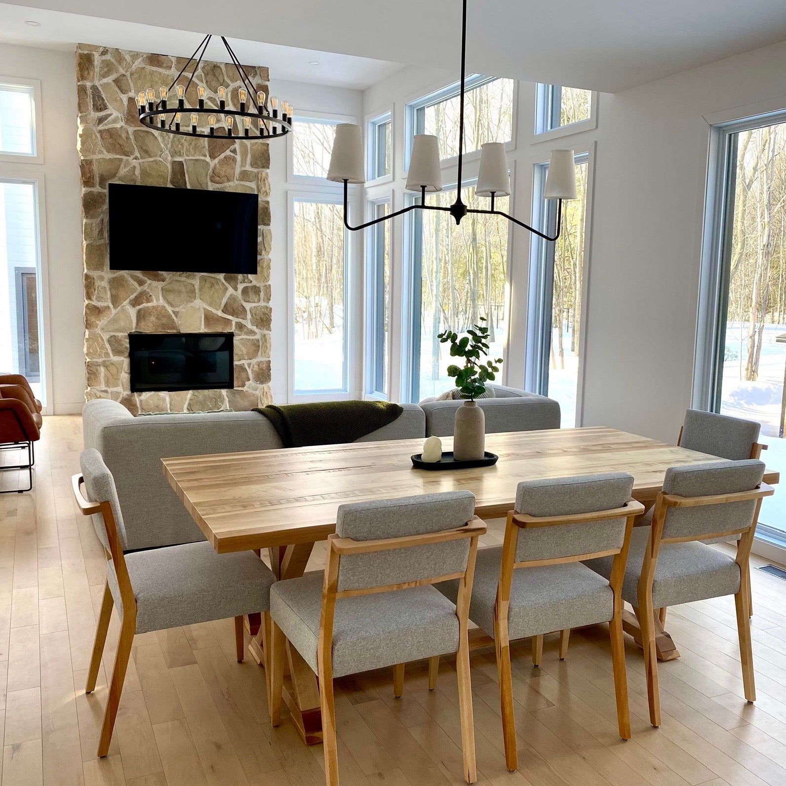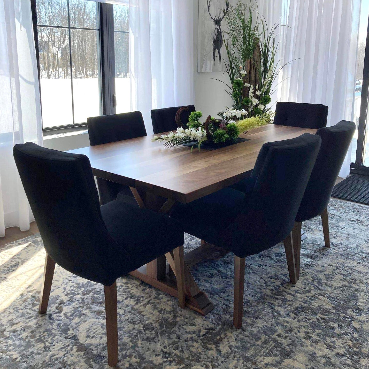 Les pattes de la table Acton Vale sont fabriquées 100% en bois massif. Pour un empattement en acier, consultez plutôt la page de notre modèle Asbestos.