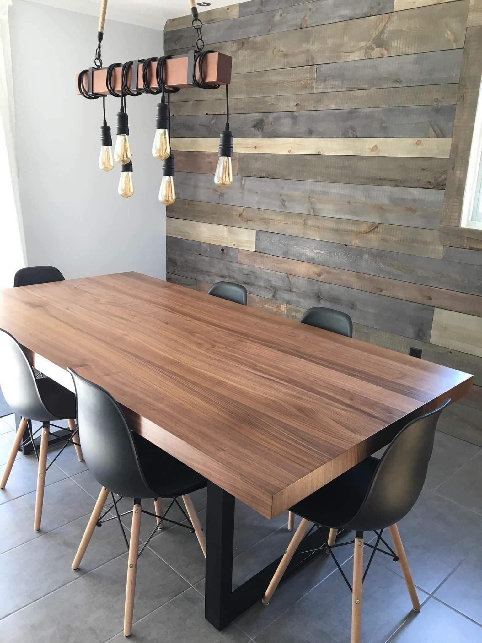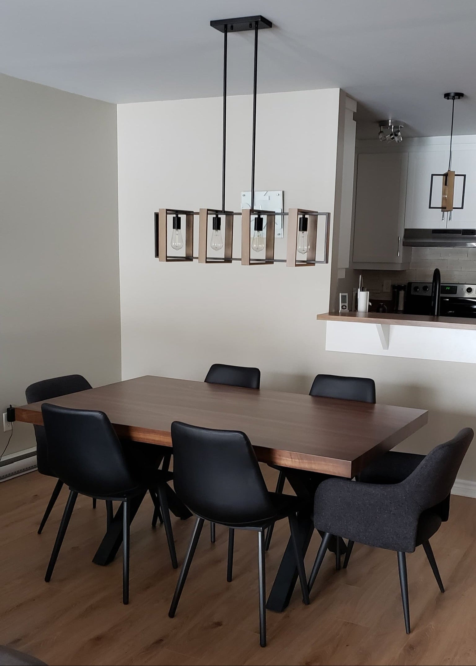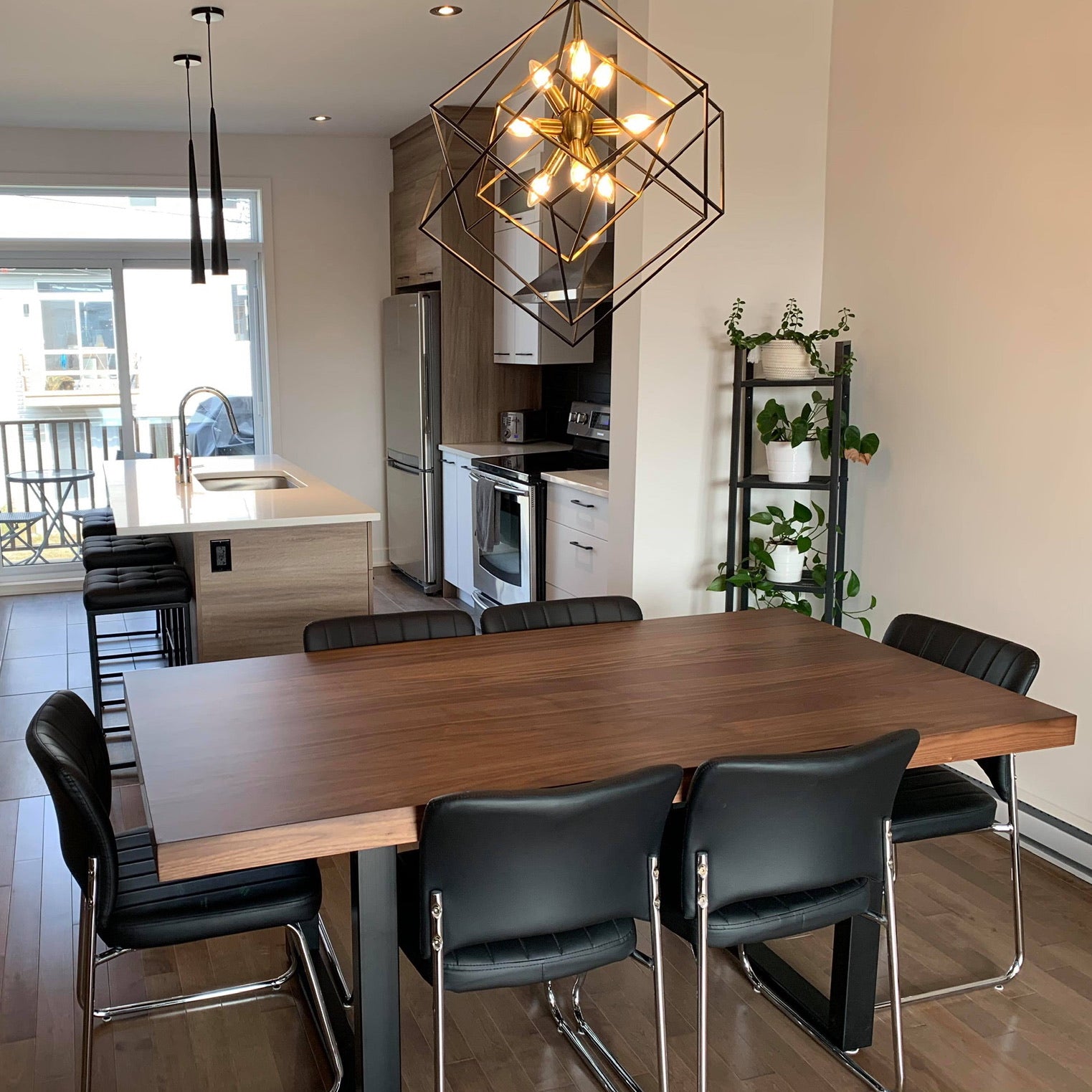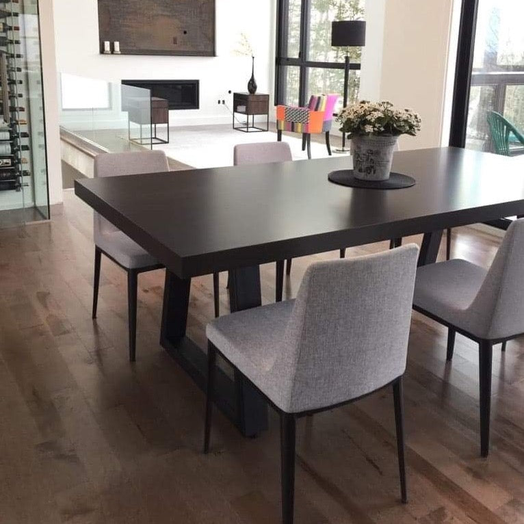 La table Gaspé est fabriquée en PLACAGE DE BOIS (au choix : noyer, merisier ou chêne).