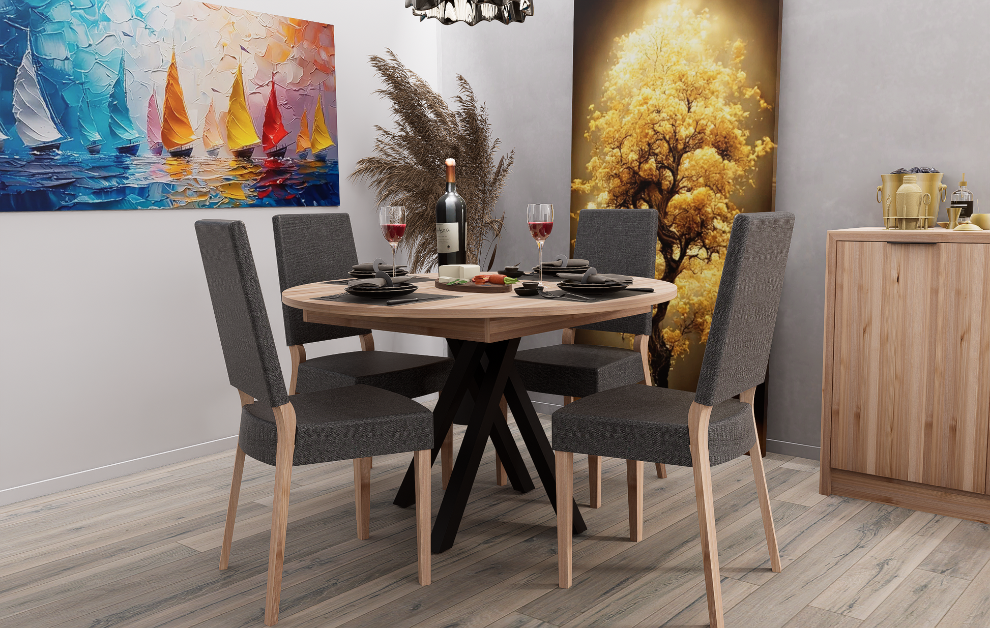 Notre table ronde Orléans est offerte en deux formats : 42" ou 48". Chaque format inclus une extension en centre de 15", facile d'installation grâce à son mécanisme d'ouverture comportant un système à crémaillère.